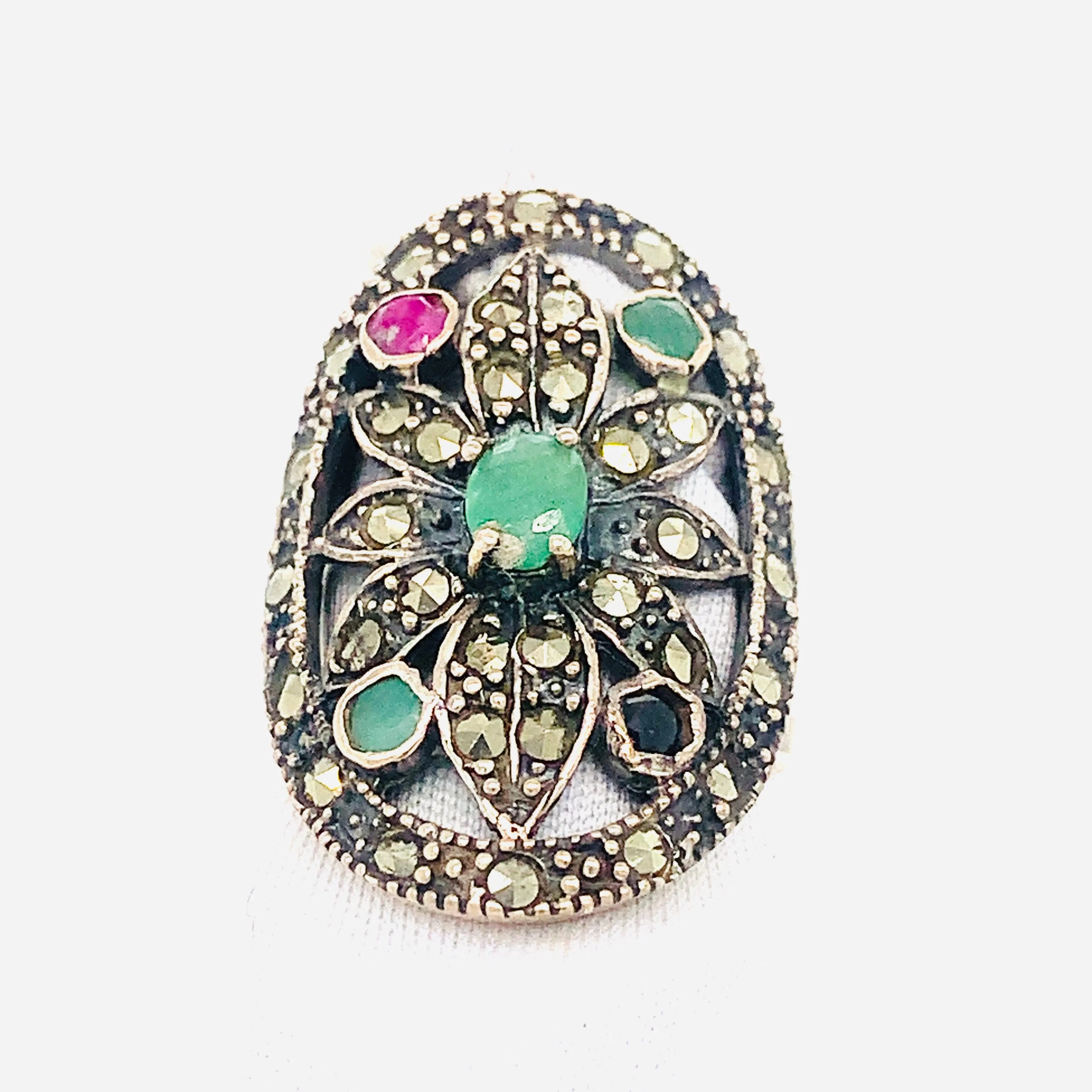 Sterling Sliver Marcasite Multi Precious Stone Ring